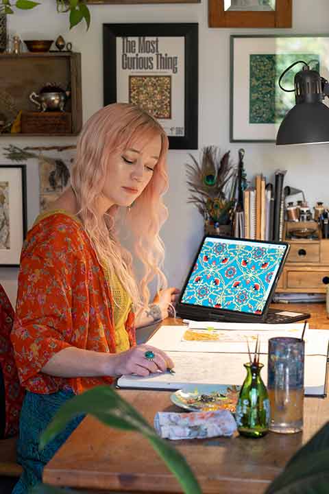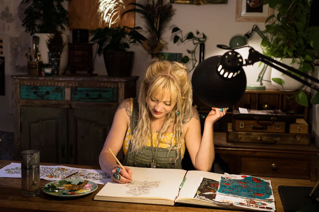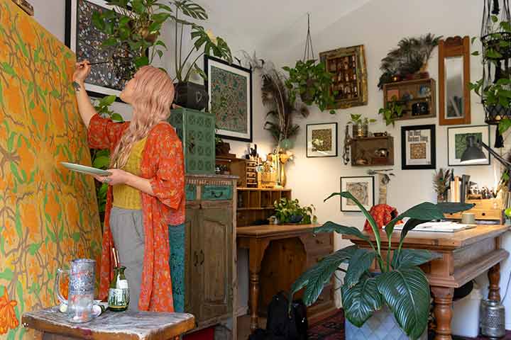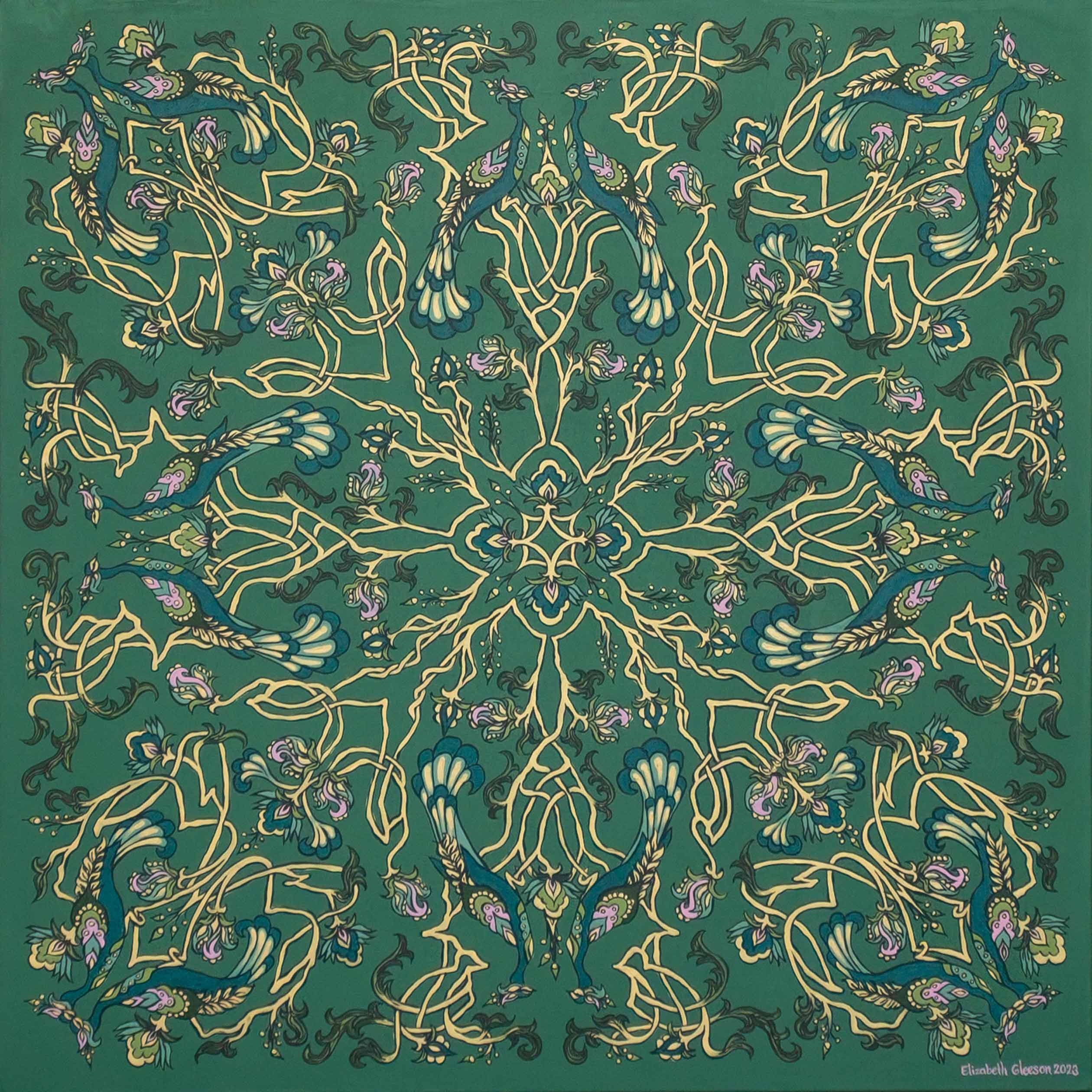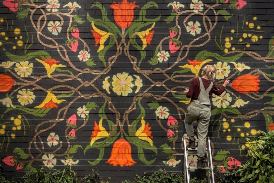 Elizabeth Gleeson is a painter known for her large scale murals and intricate fine art, distinctly recognisable due to her patterned, contemporary take on a folk-nouveau style.
