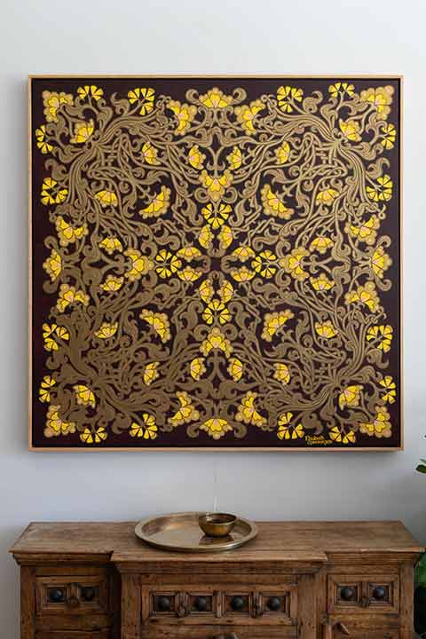 My works reflect a deep fascination with intricate patterns and an insatiable passion for the rich, recognisable aesthetics of past art eras and cultures that deeply inspire me. My entire artistic process centres around creating a finely balanced composition that incorporates a complex set of elements, whilst combining colour and form to create a sense of beauty, depth and intrigue."