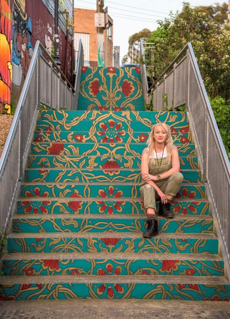 Elizabeth shares a studio with artist Gerard Russo, on their tree-filled property bordered by a creek. Visitors can contribute to a collaborative mural, view works in progress and take a tour through the lush, new art-themed short-stay accommodation attached to the studio. Visitors can also browse the pop-up shop and gallery to purchase original works and fine art prints and discuss commissioning murals.