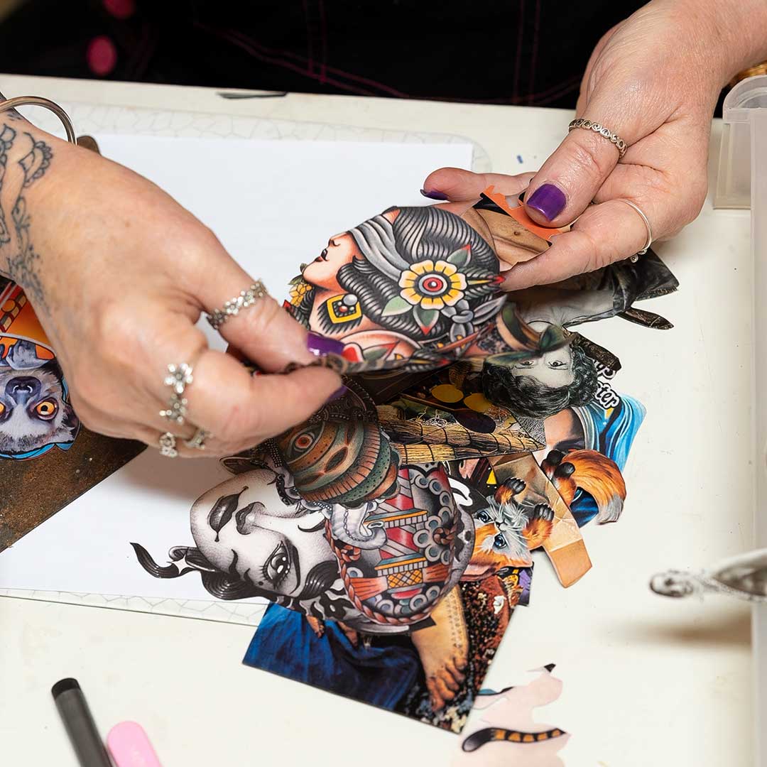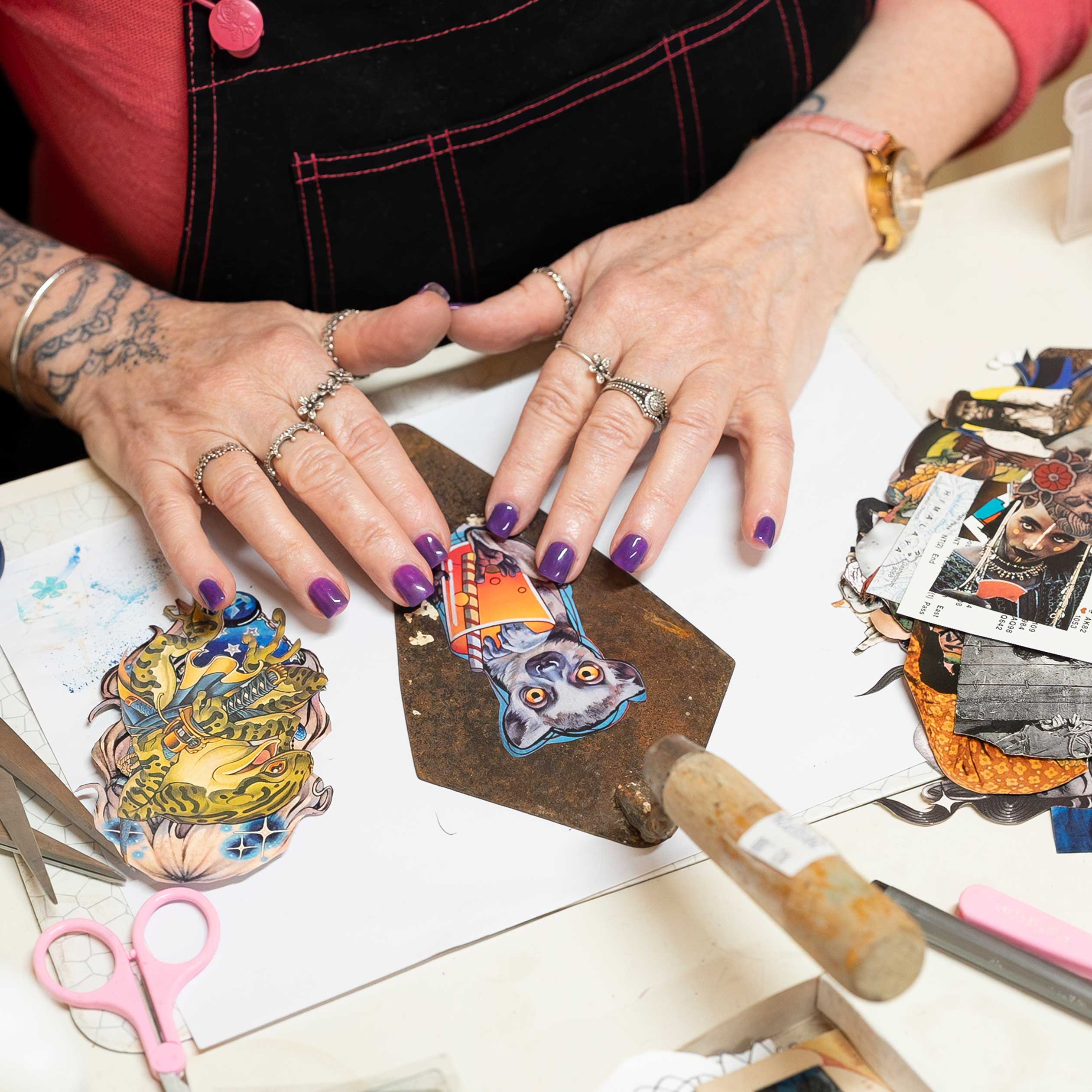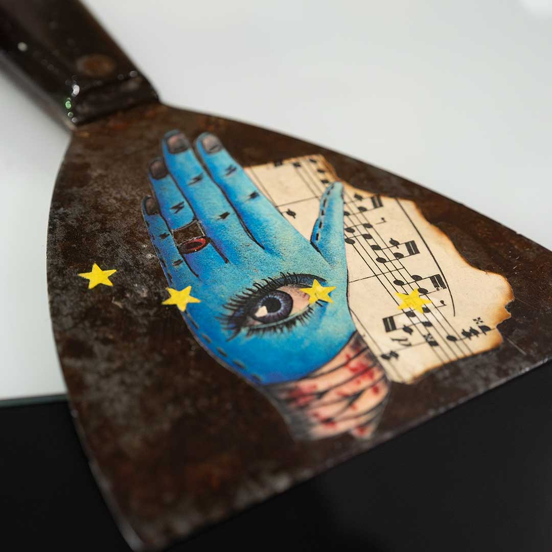 "I work intuitively, letting the materials guide me. I enjoy balancing contrasts, darkness and humour, fragility and strength, pop culture and raw honesty. The process is as important as the outcome, often revealing unexpected connections and emotional resonance.