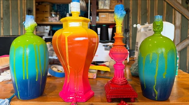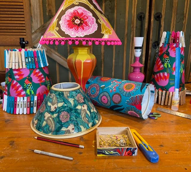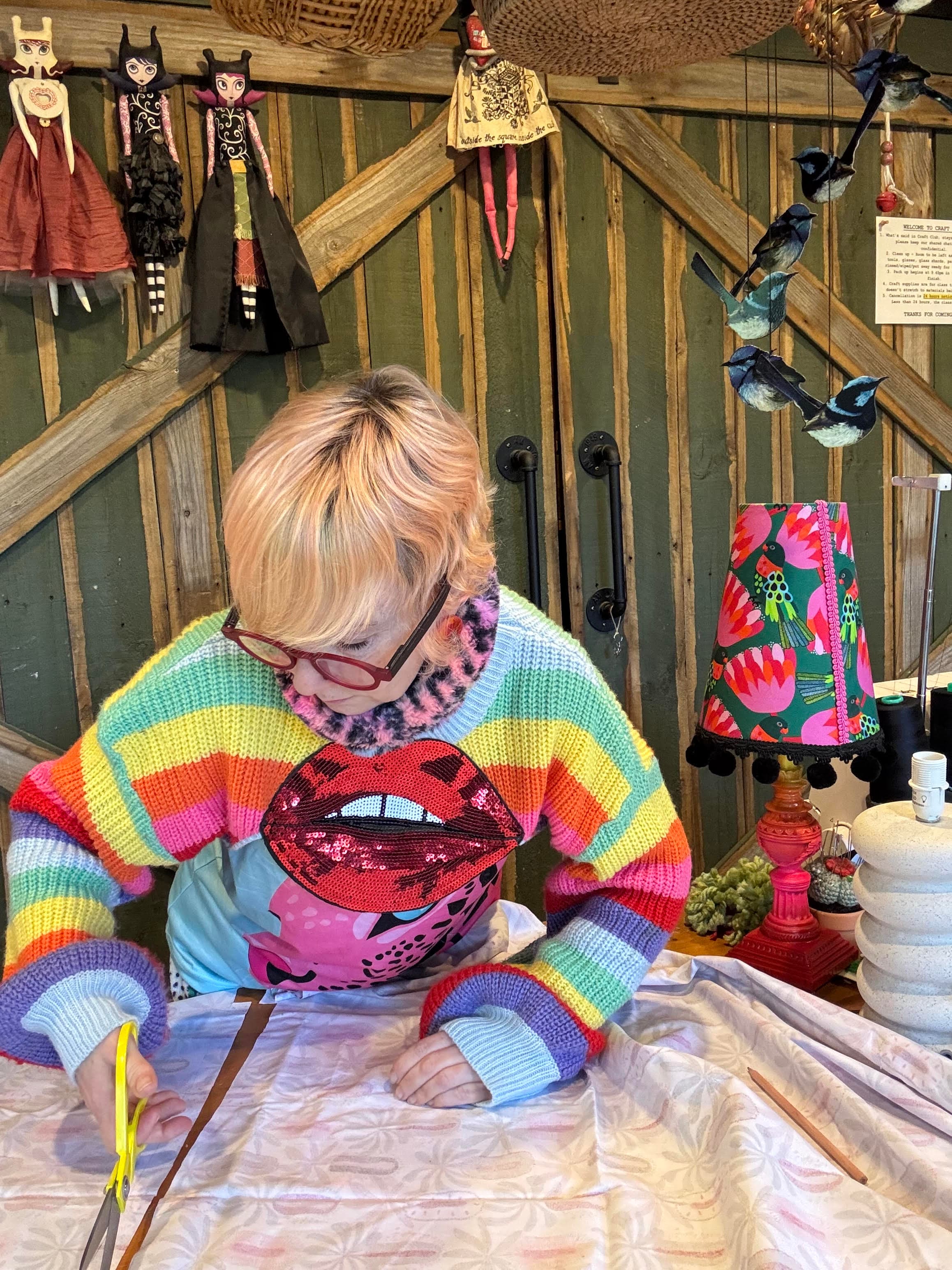 "Textiles and light (lamps) are the perfect metaphor for my journey; making something beautiful from discarded pieces and letting the light shine through.