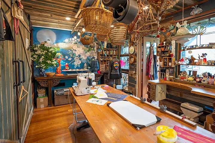 Isy reassembles, strips, sews, screen prints, dyes, glues and stitches on inclusions. Each piece takes on a unique life of it’s own. Each contains it’s own story of a broken past and liberating rebirth, inviting the observer to reflect on their own possibilities. Isy’s hand-built studio is a work of art in itself. The deep teal tones and recycled fence timbers create a sanctuary for her personal creative process. Every inch covered in old and new works, tools, and inspirational resources. A place to chop, stitch and start again.