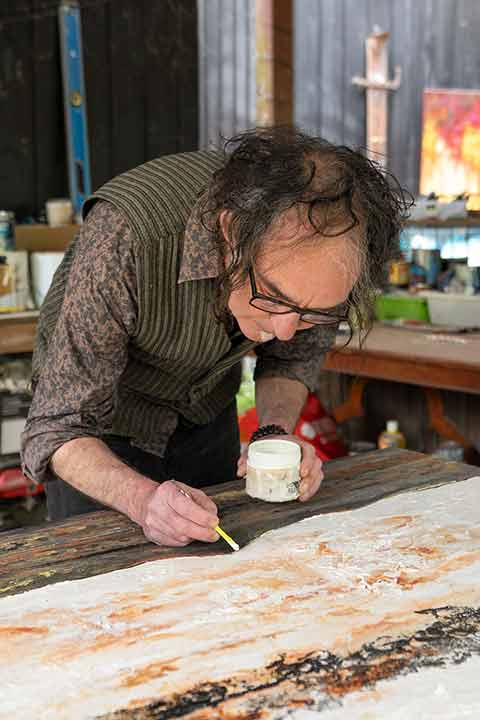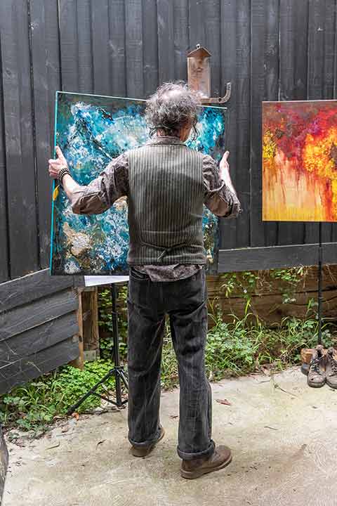 Jamie’s primary focus is the exploration of movement, flow, and his response to nature through abstract painting. He has also composed music for over 35 years, and his studio practice brings these two disciplines together.