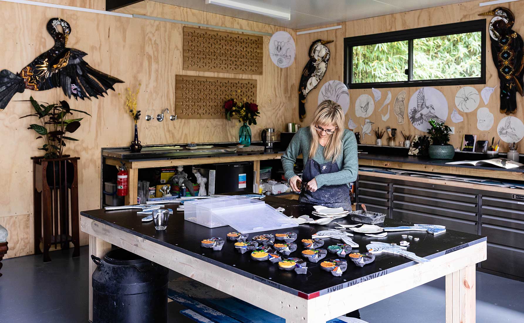 Visitors will complete a circuit of spaces and have access to multiple artwork displays, including feature mosaic walls and floors, and to the garden with views of Port Phillip Bay. The large working studio space will reflect the creative process and visitors will be able to observe a piece in the making over the duration of the weekend.