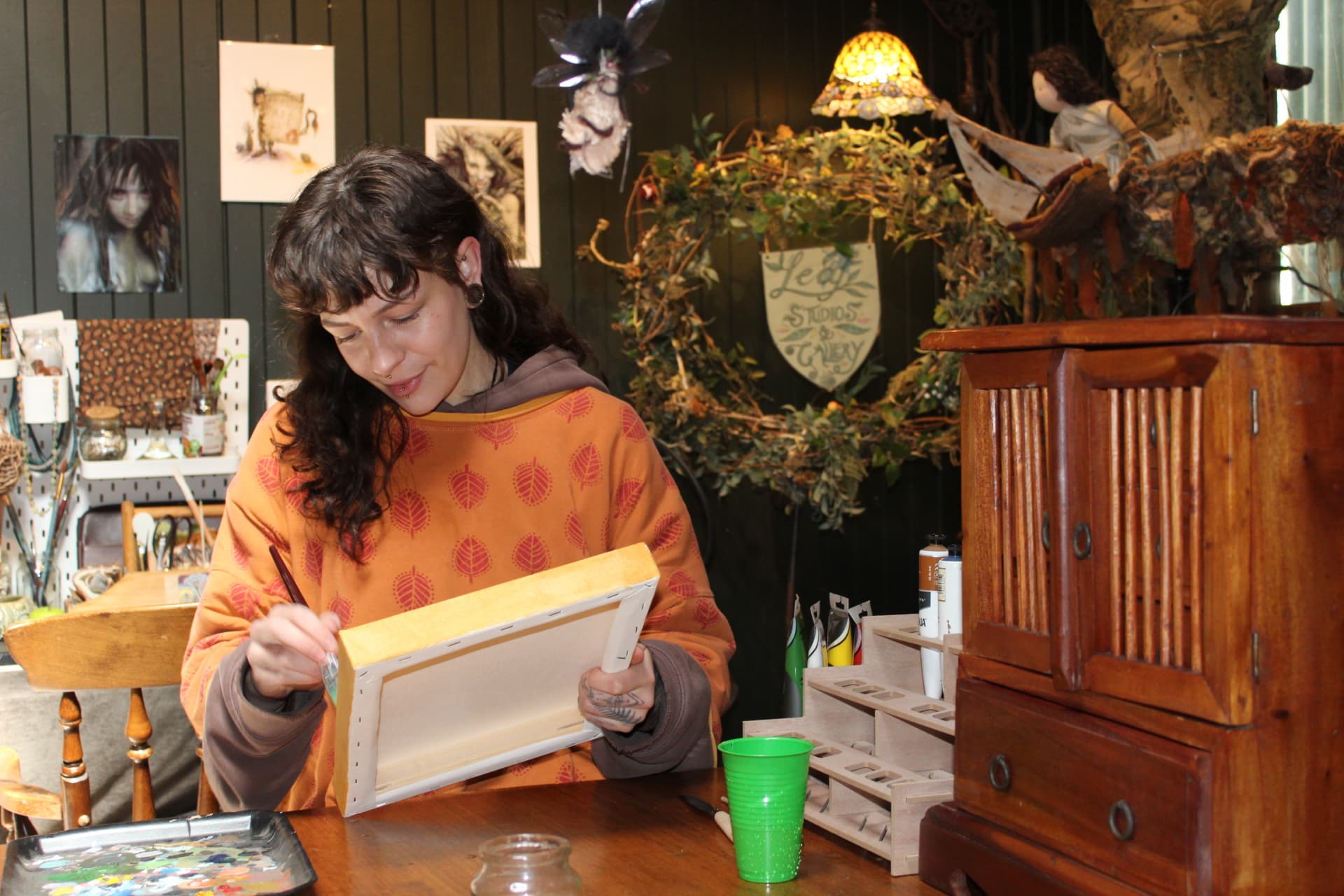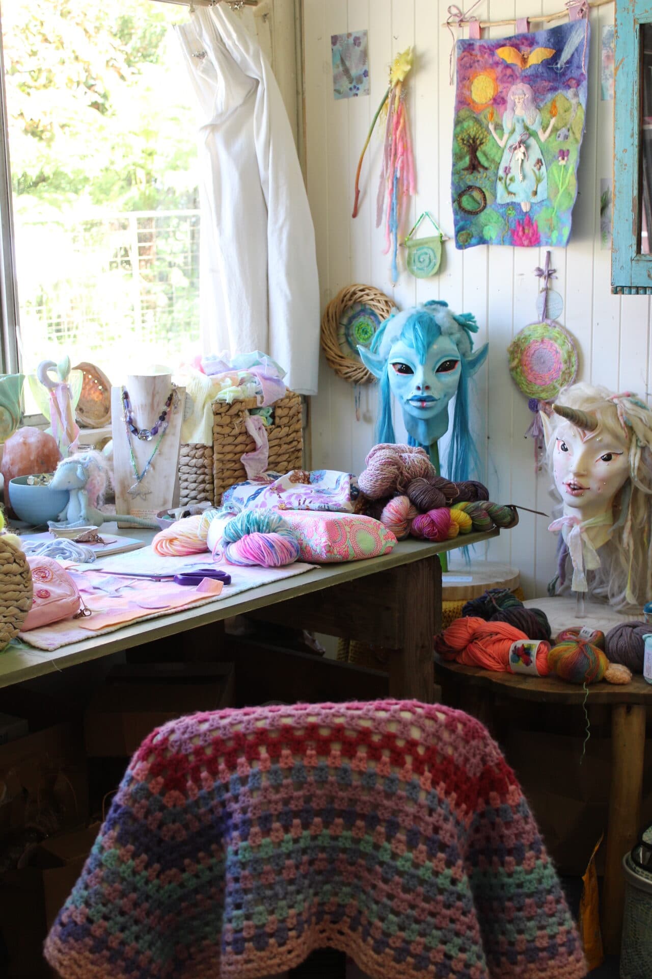 An established traditional artist collective nestled in Kallista for over a decade, Leaf Studios houses six resident artists, their working studios showcase their ongoing art practices to the community. The capacity to create individually or collaboratively has established a nurturing and supportive hub of connected women working in textiles, paint, ceramics, illustration, sculpture, print making, doll making, jewellery, ritual, magical and artist’s tools.