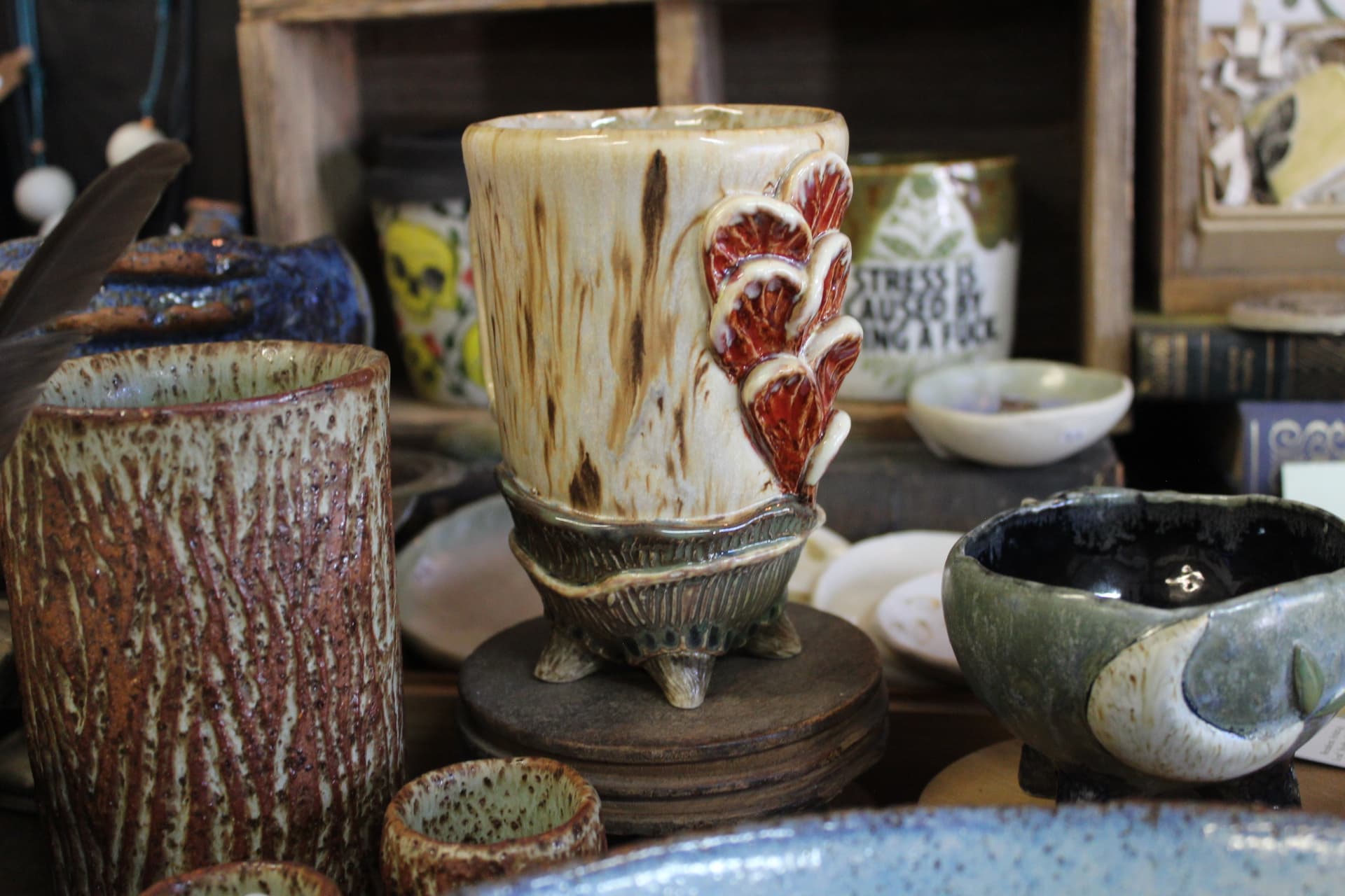 Nature is a central source of inspiration for all artists at Leaf, though it is interpreted through many lenses. This reveals itself in varied palettes, literal and abstracted forms, and works imbued with folklore, whimsy, or quiet utility. As some artists move further into their creative lives, explorations of ancestral roots and the balance—the yin and yang—of life begin to surface.