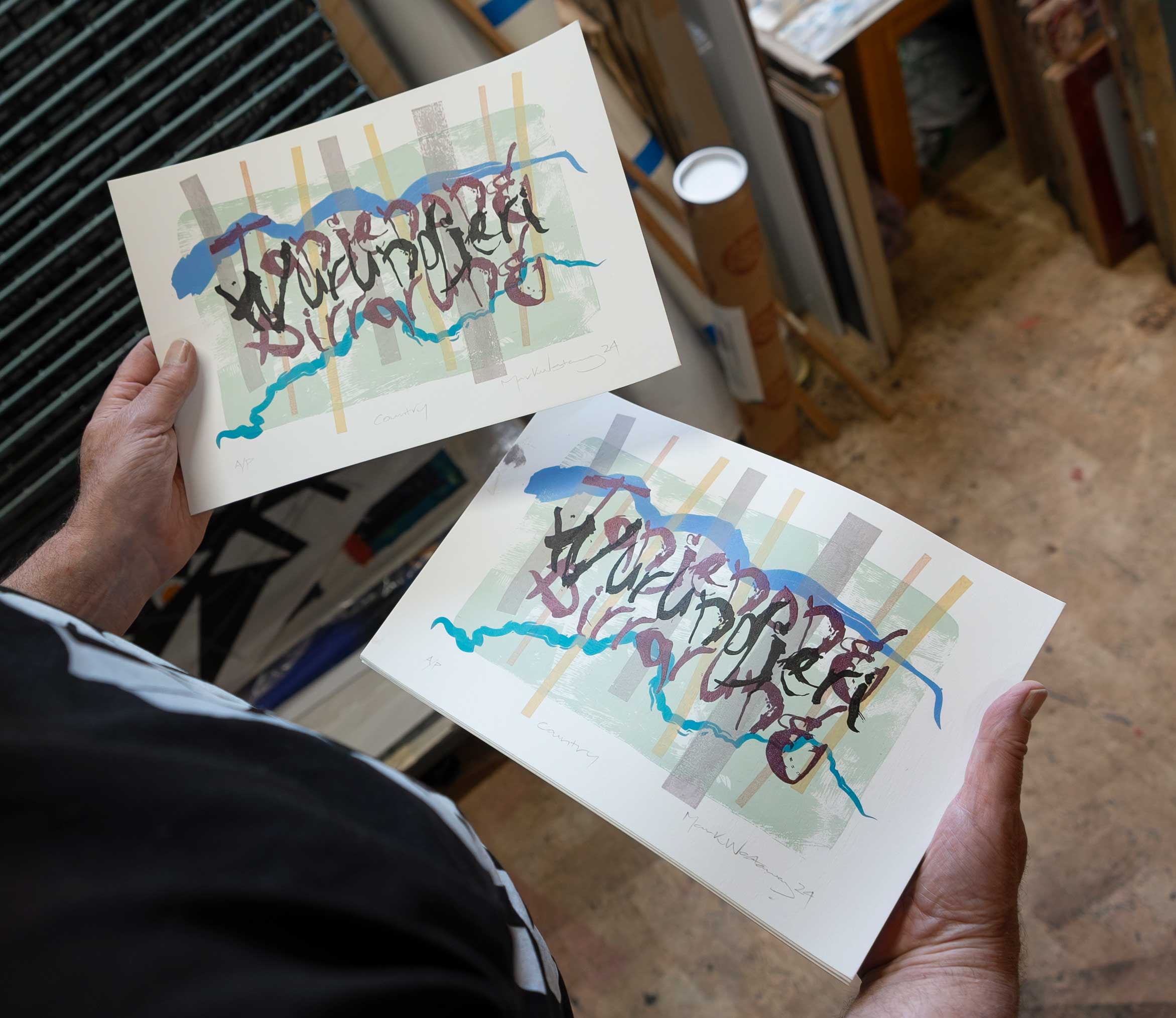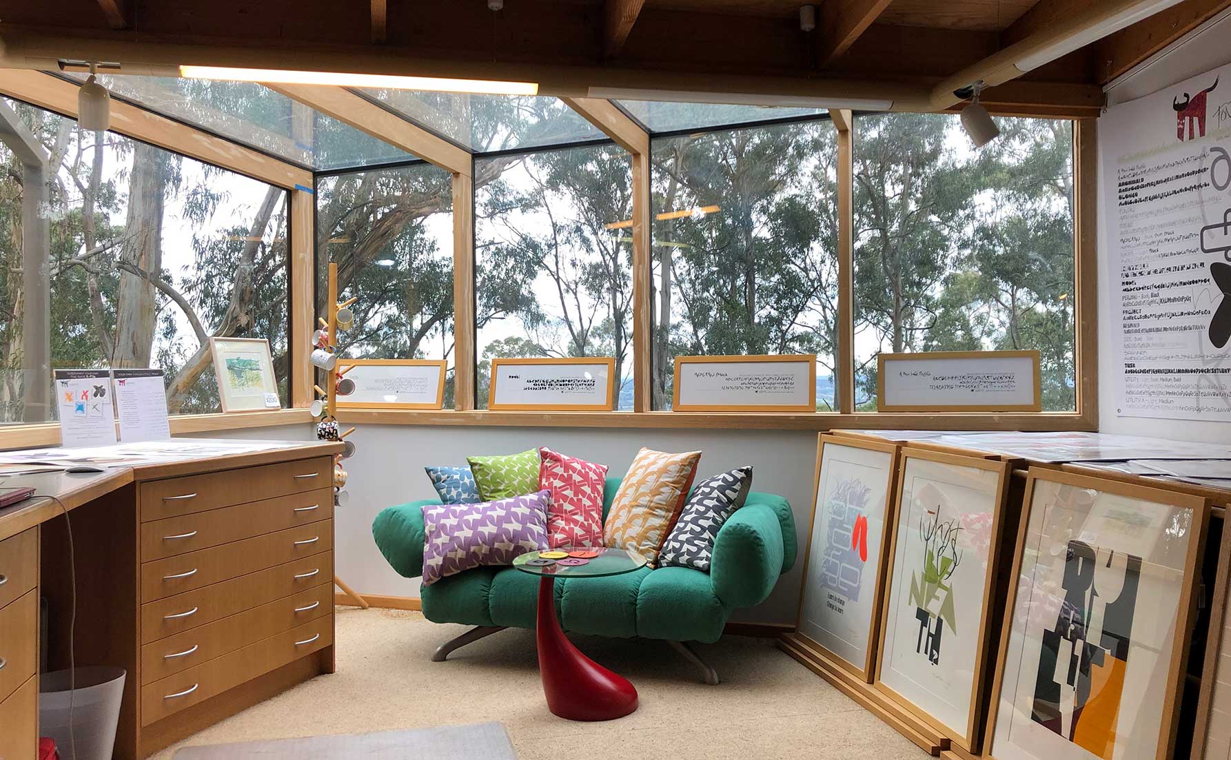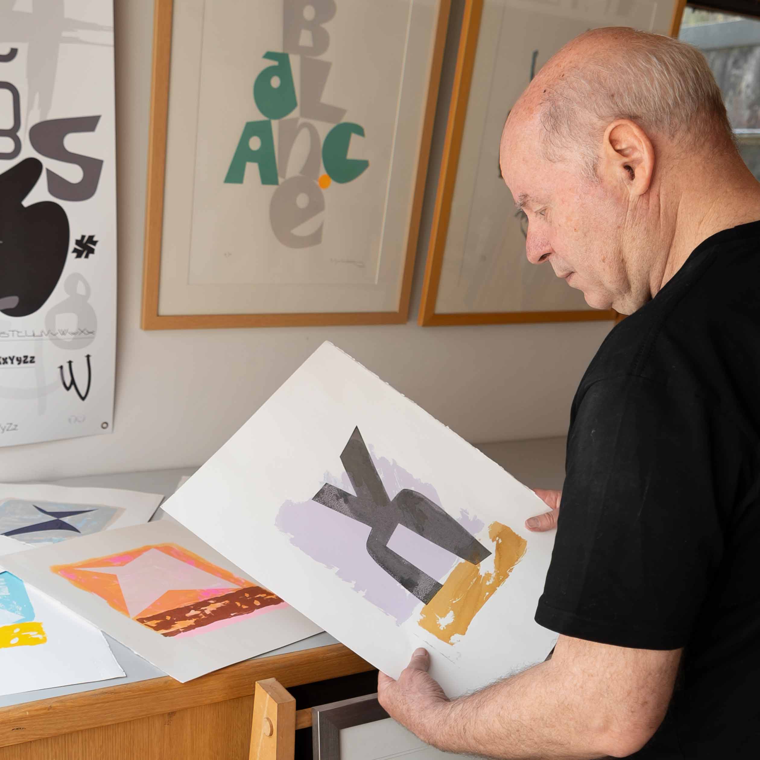 The studio has a digital workflow for font production and graphic design plus a traditional (read ‘old style’) screen printing/darkroom set up.
