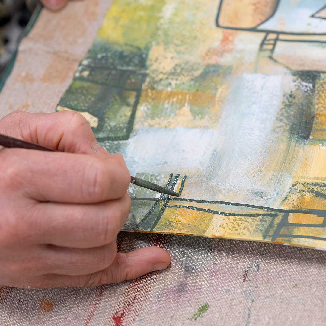 “Each artwork begins with expressive marks and forms and tells my emotive story of joy, struggle and resolution through colour, emotive gesture and abstracted rhythms. I paint in acrylic and gouache with acrylic mediums. My work incorporates a deeply internalized translation of the observation of the natural and rhythmic processes of decay and growth.”