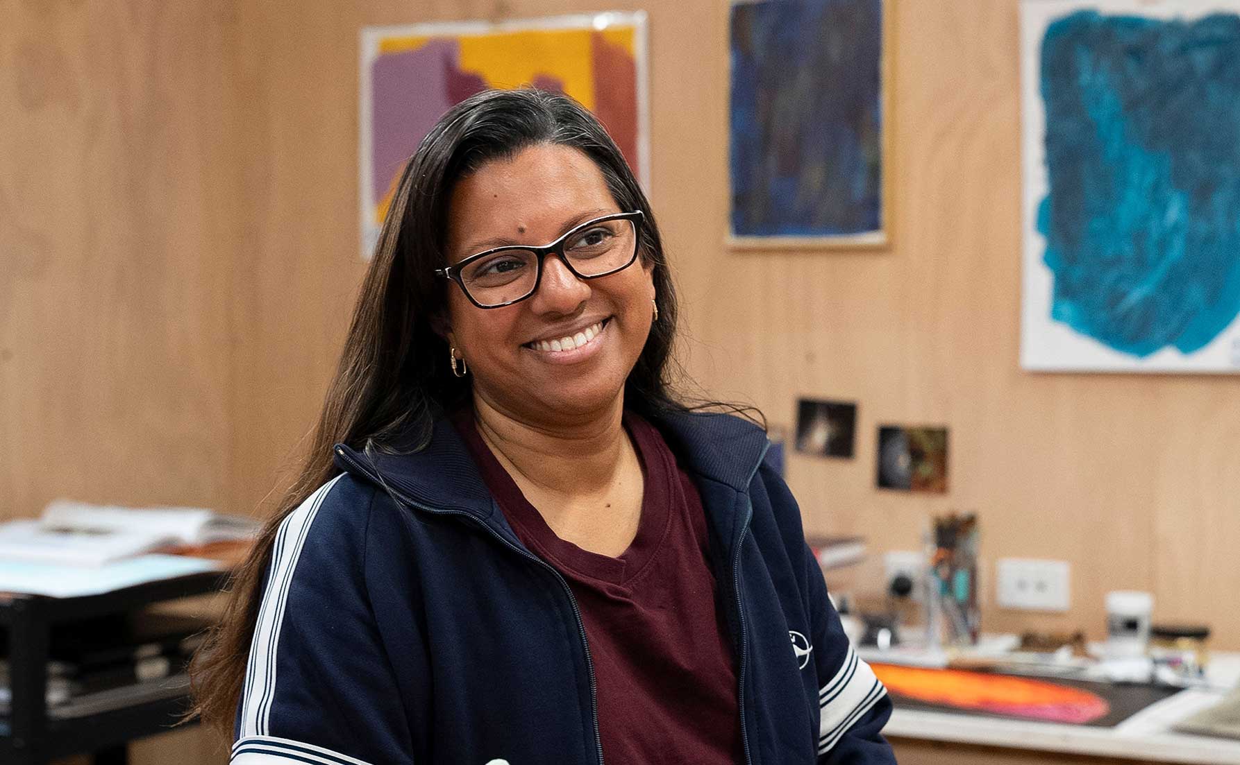 Natalie Wijeyeratne is an abstract artist who paints and makes marks intuitively. Through experimentation and consistent studio time, themes and patterns emerge, pushing her in a new direction, or pulling her into comfortable familiarity.