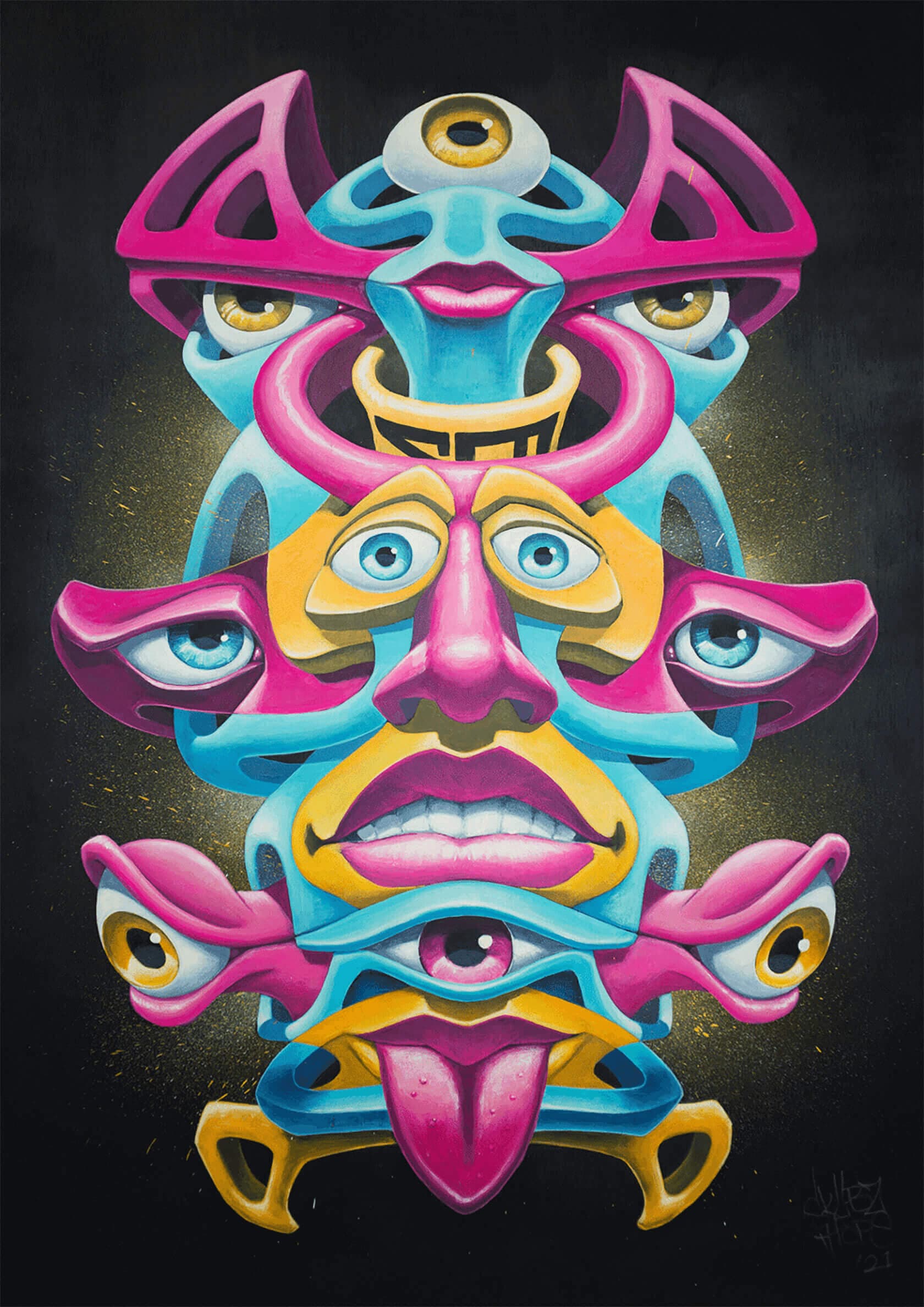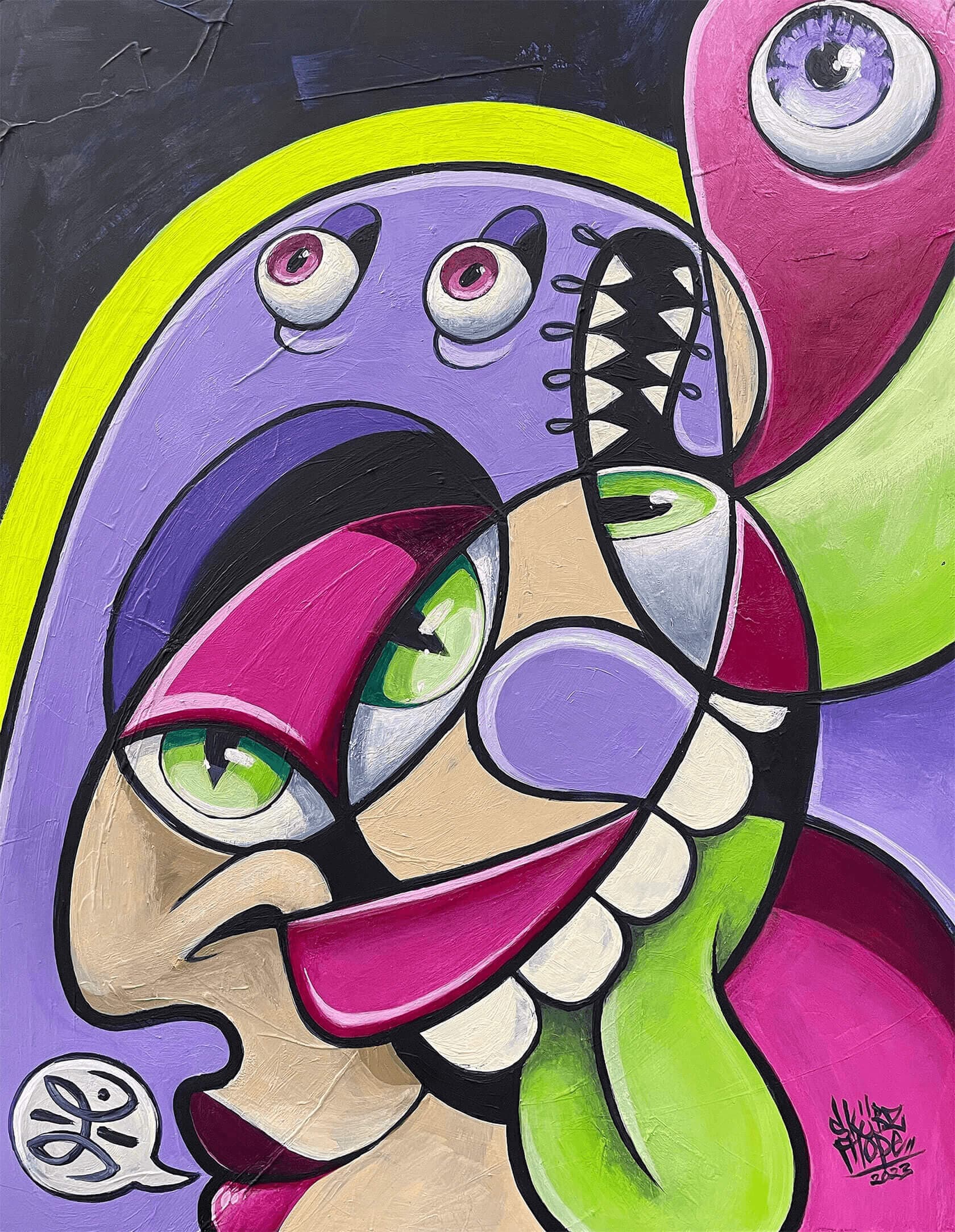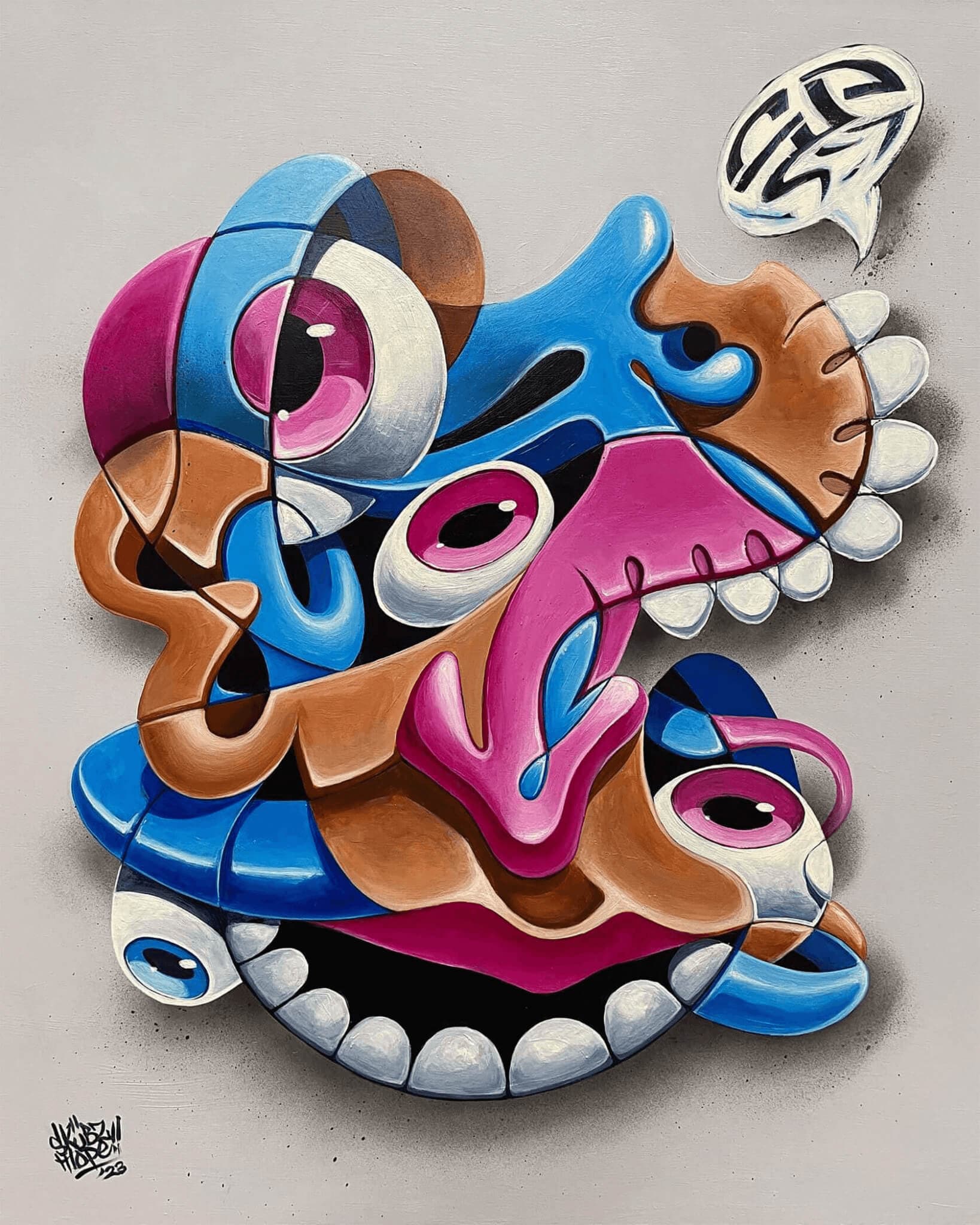 Contact SkübzSkübz’s painting is informed by a blend of influences including animation, comics, graffiti, portraiture and abstraction, whilst his sculptures seek to breathe new life into discarded objects and waste materials.