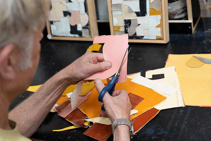 Stephen’s approach encompasses intaglio printmaking, collage, painting and drawing. Layered abstract forms create soft edges built upon what lies beneath. Stephen's artworks are self-referential.