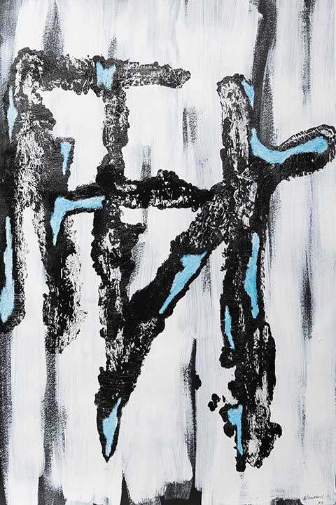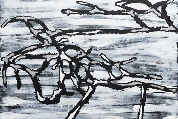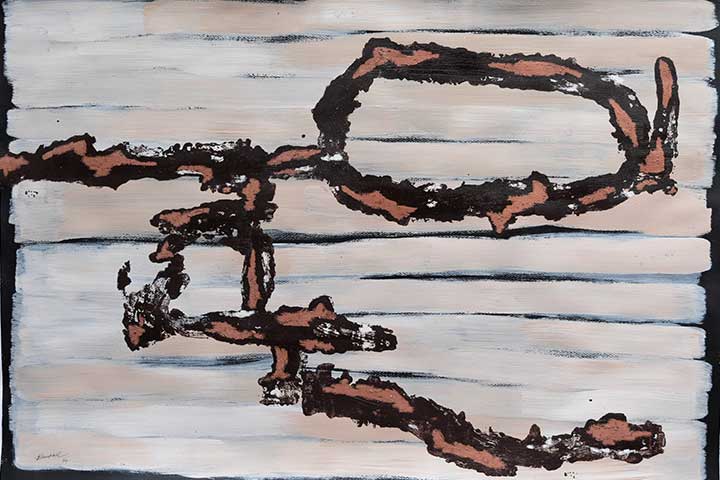 Awareness of our traditional lands informs her work as she explores symbolically marks of both intrusion and unification on ancient land. She is inspired by found textures and shapes from surfaces in both the natural and man-made environments. Trish is now working on applying these themes and others in gel printing, oil transfer drawing and collage.