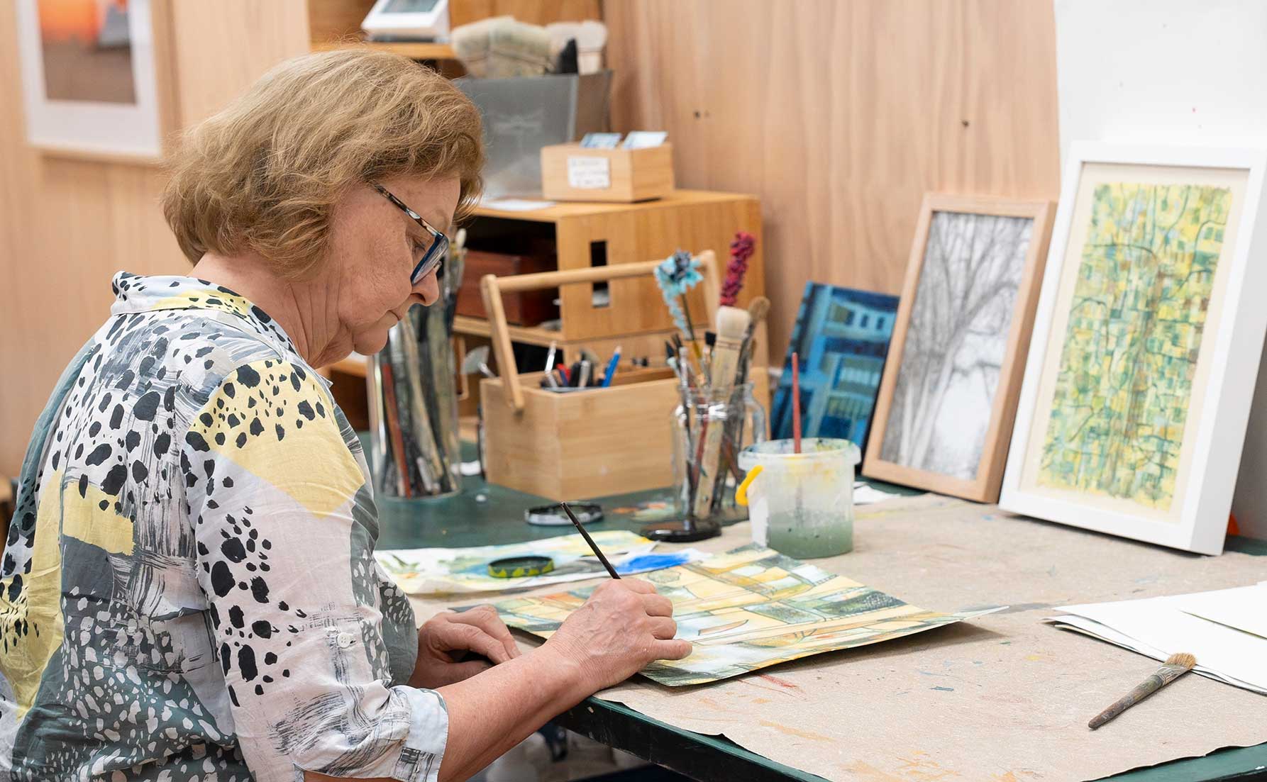 MaryLin lives and creates in the temperate rainforest of the Dandenong Ranges near Narrm (Melbourne). She holds a bachelor’s degree in painting and has spent many years joyfully exploring this contemporary and ancient art form. Currently, she is an emerging artist in residence at the Burrinja Cultural Centre in Upwey, where she continues to experiment with art materials and tools to create her dynamic abstractions.